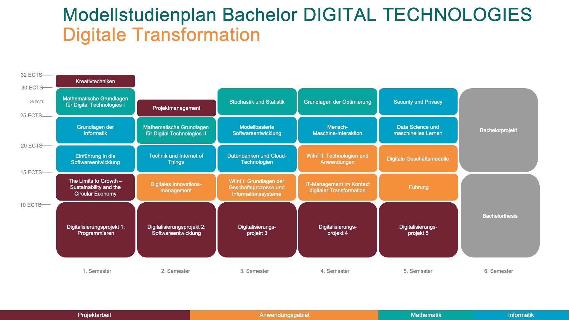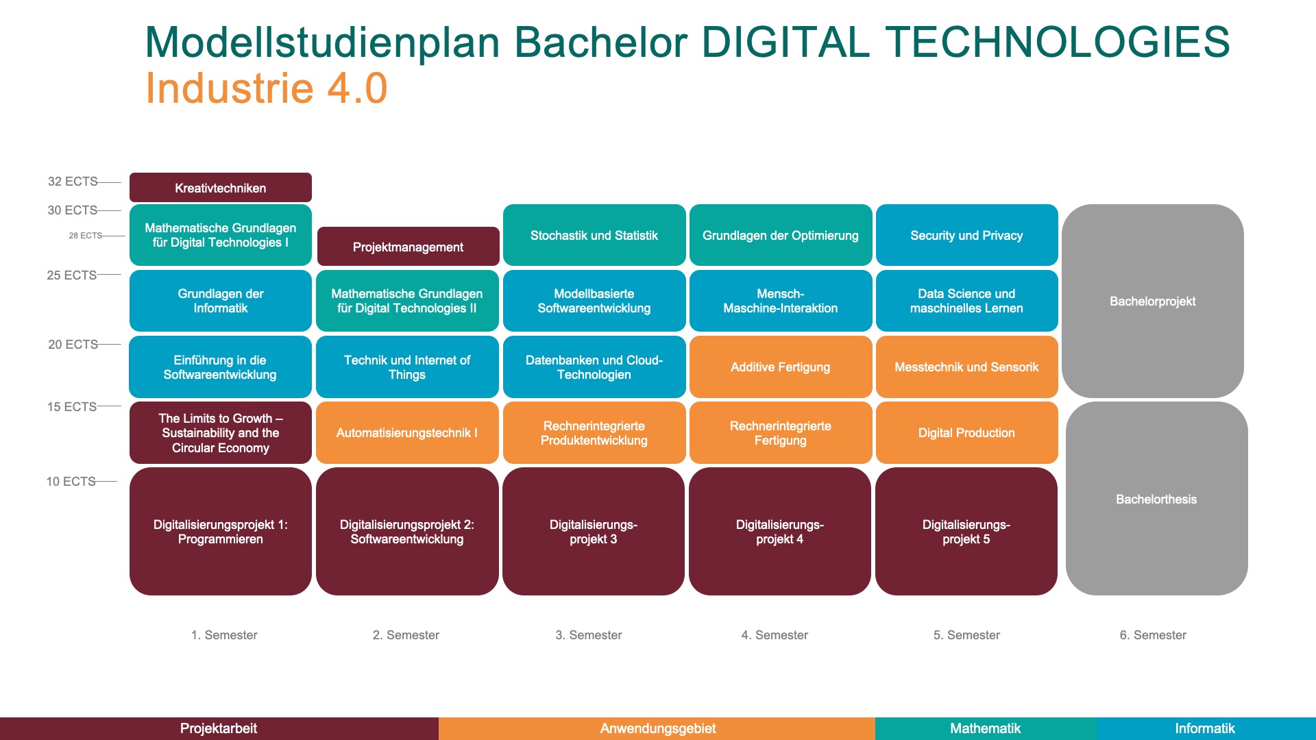 Das Bachelorstudium Digital Technologies bereitet dich optimal auf die Anforderungen der digitalen Zukunft vor. Du erlernst nicht nur die theoretischen Grundlagen der Informatik, sondern entwickelst auch die Fähigkeit, dieses Wissen in realen Projekten anzuwenden. Ziel ist es, dich zu einem kreativen und verantwortungsbewussten Spezialisten an der Schnittstelle von Informatik und Anwendungsgebiet auszubilden.