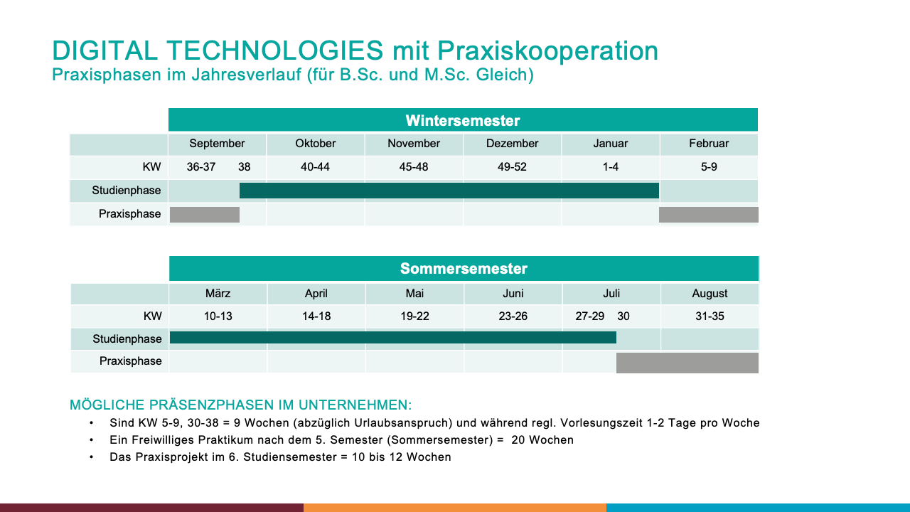 Ein Vollzeit-Praxissemester im Unternehmen.
